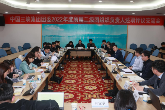 移民辦、三峽國際、三峽建工、湖北能源、長江環保集團、三峽資本、三峽基地公司、三峽資產公司、三峽傳媒公司、三峽西藏能投、三峽四川能投、三峽重慶能投等12家二級團組織負責人在會上進行述職,集團公司團委委員、各二級團組織負責人根據述職情況進行測評打分,全體參會團干部就集團共青團2023年度重點工作開展專題交流研討,進一步凝聚起奮進中國式現代化的青春三峽磅礴力量。