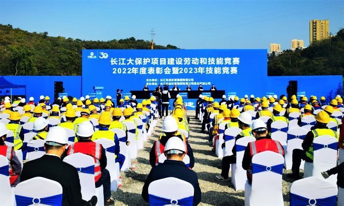 ▲長江大保護項目建設勞動和技能競賽2022年度表彰會暨2023年技能競賽現場 攝影:彭業華