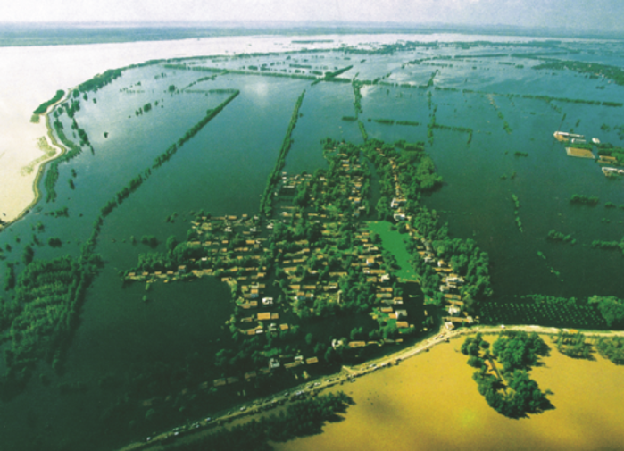 1998年長江發(fā)生洪災(zāi)時(shí)被水淹沒的嘉魚縣鄉(xiāng)村簰洲灣
