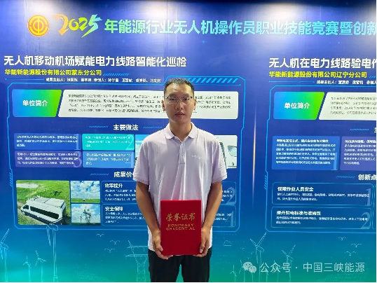 9月11日,2025年全國能源行業無人機操作員職業技能競賽在陜西省華陰市圓滿落幕。集團公司共選派3支隊伍6名選手參加競賽,其中,三峽能源安徽分公司楊廣海榮獲個人一等獎,楊廣海、三峽集團廣東分公司莊文軍組成的參賽隊伍榮獲團體三等獎。