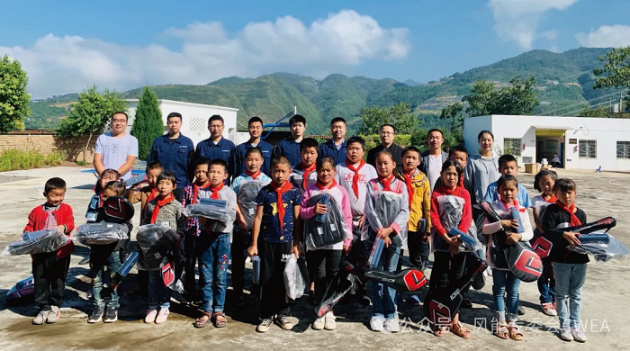 金陽索瑪花開,巨大的風電機組屹立于山頭,將原本貧瘠的荒山變成了助力鄉(xiāng)村振興的“金山銀山”。“大風車”每年可“吹出”約4。19億千瓦時的清潔能源,每年可為當地政府增加2000多萬元的稅收,建設期創(chuàng)造出500多個就業(yè)崗位。六一兒童節(jié)期間,金陽風電場的現場運維團隊為偏遠學校的學生們發(fā)放教學物資和生活用品,青年志愿者們向小朋友們介紹風電機組模型,小朋友們被“大風車”吹出的清潔能源深深吸引,“小腦袋們”圍著志愿者老師嘰嘰喳喳好奇地詢問風力發(fā)電的種種細節(jié)。