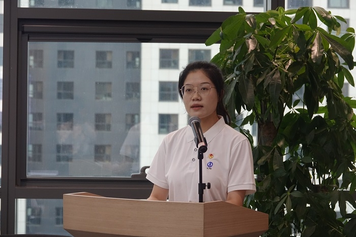 青年代表在北京通州區(qū)中倉街道黨工委慶祝中國共產(chǎn)黨成立104周年主題黨日活動上作主題宣講
